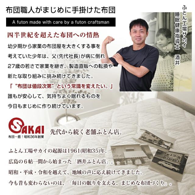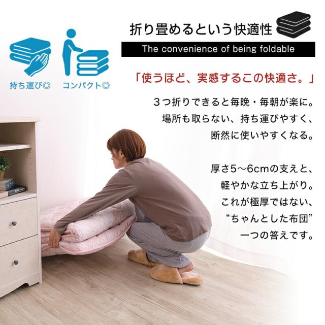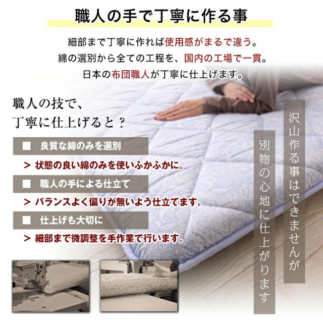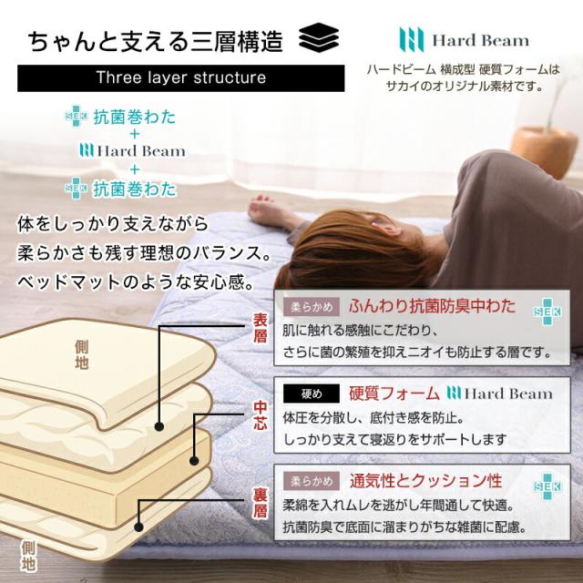 通気性がよく、嫌な臭いも抑え、かさ高がありヘタリにくい、寝心地重視の敷布団です。