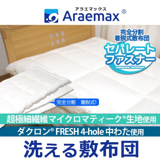超極細特殊繊維マイクロマティーク生地使用 インビスタ ダクロン(R)FRESH 4-hole(4穴)中わた 完全分割 着脱式 洗える敷布団 ダブルサイズ 140×205cm