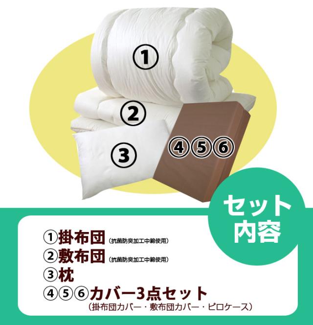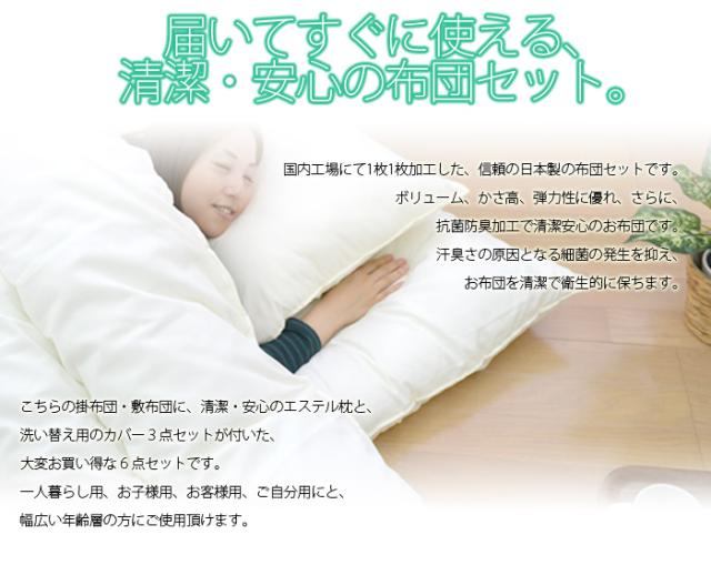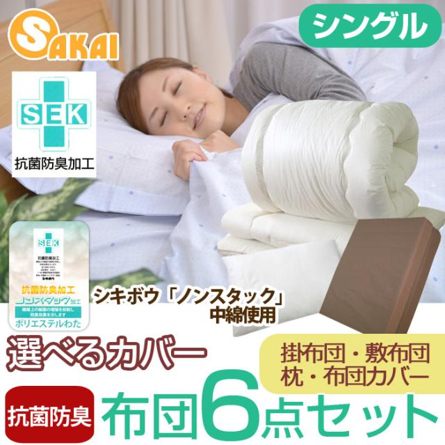 無地 6点 布団セット シングル サイズ 抗菌防臭加工 中綿使用 シングル 組布団 敷き布団 敷布団 掛布団 掛け布団 枕