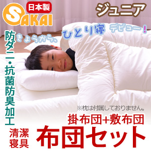 無地 子供用布団 掛敷 布団セット ジュニア サイズ 防ダニ・抗菌防臭加工 中綿使用 組布団 掛布団 敷き布団