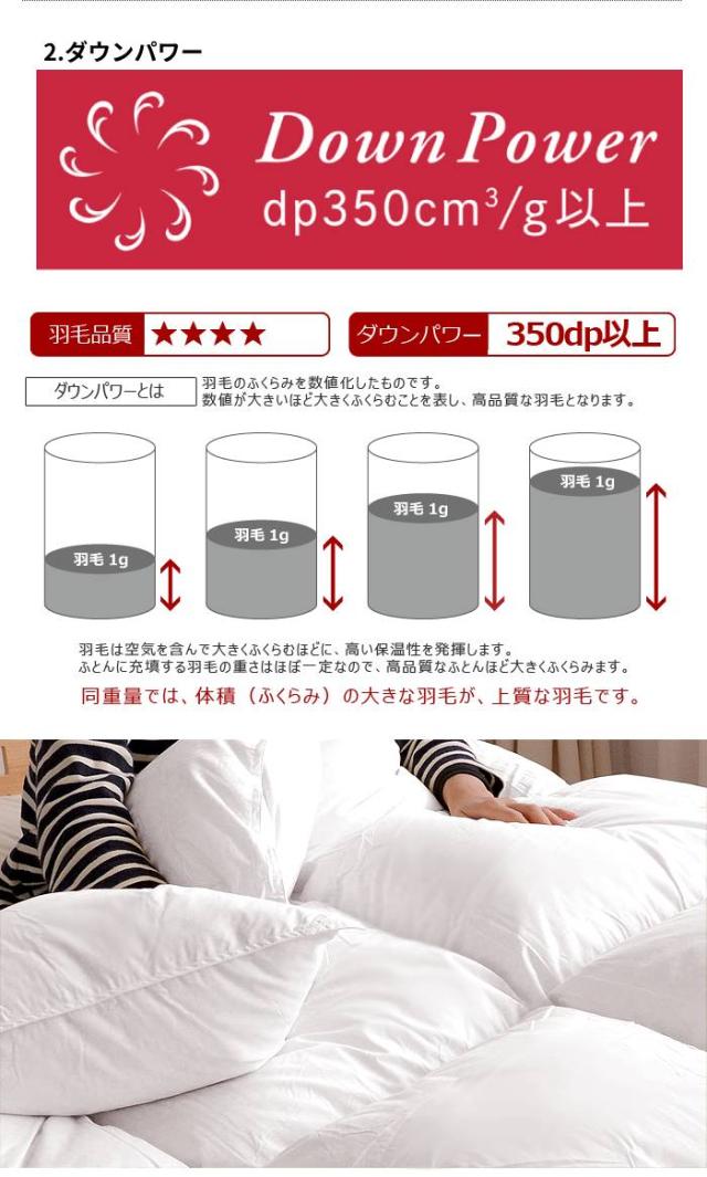 ホワイトダウンを使用しておりますが、まれにグレーの羽根が入る場合がございます。