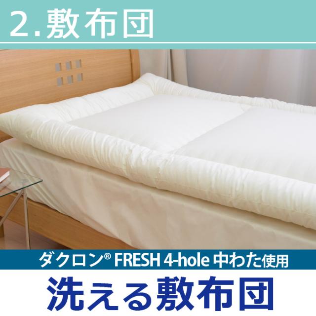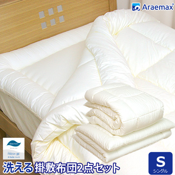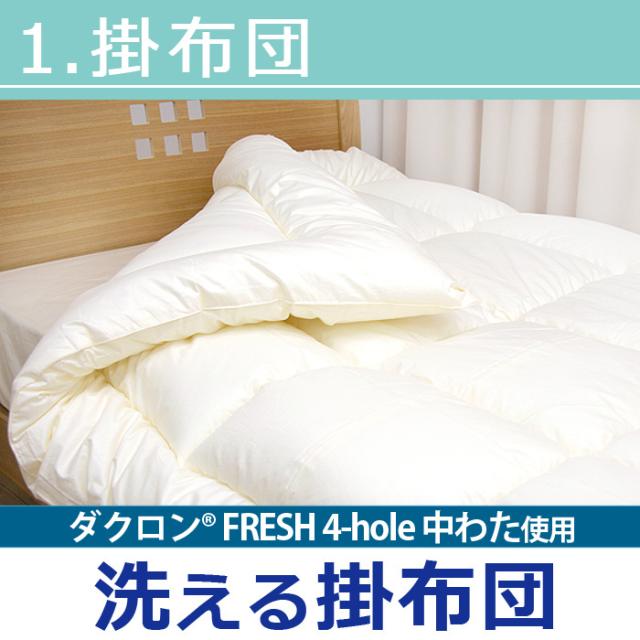 洗える布団 2点セット シングルサイズ 掛敷セット ダクロン(R)FRESH 4-hole(4穴)中わた使用 洗える掛け布団 & 洗える敷布団