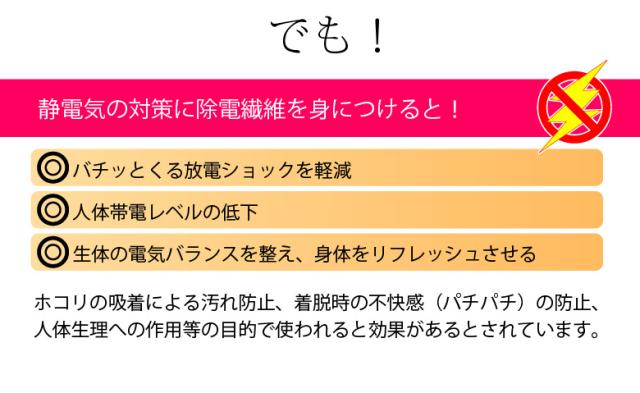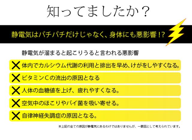 - 説明書のようにつけてしばらく過ごしてますが、つける前に比べて軽減されています。 パチパチ音がするほどの静電気が起きる回数が減りました。 サイズは他の方も書かれていましたが、ゆとりがあります。 夏でも静...