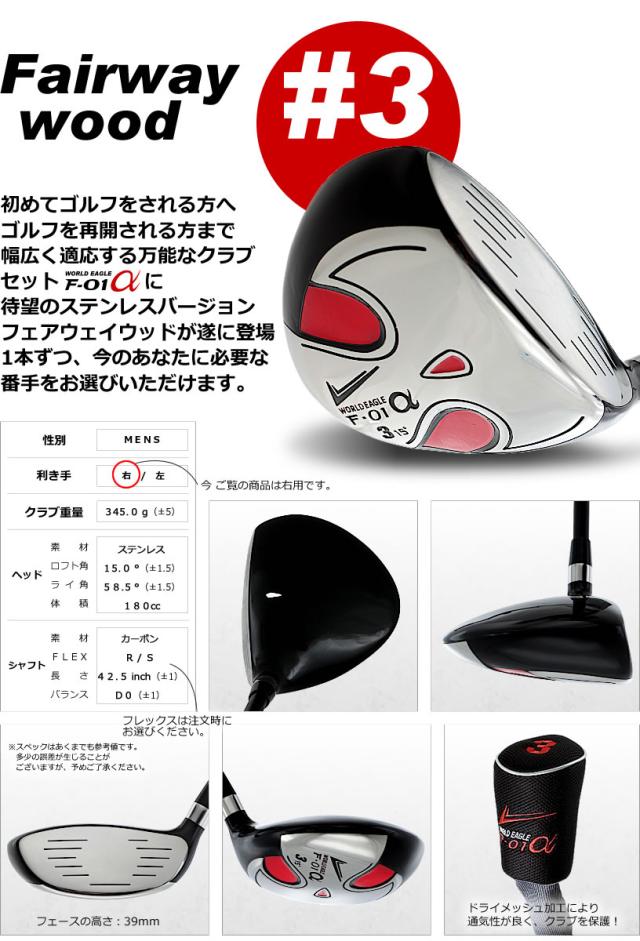 春のグリーンキャンペーン ワールドイーグル ゴルフ メンズ F-01 フェアウェイウッド ステンレス 3番 右用 フレックスR S FW カーボンシャフト