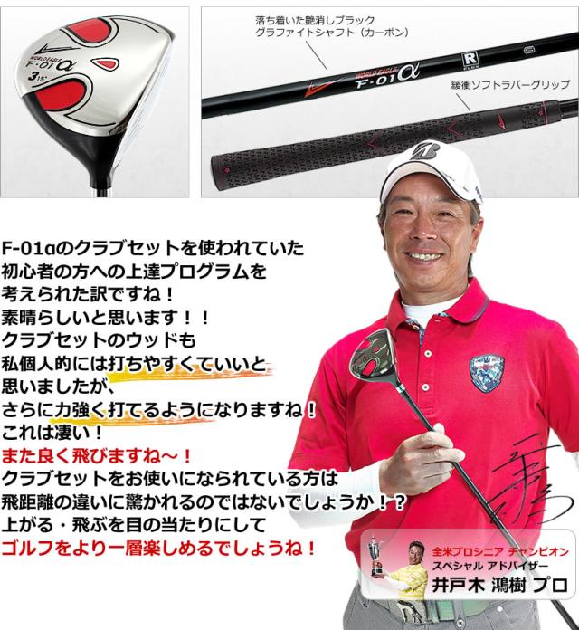 「F-01αのクラブセットを使われていた初心者の方への上達プログラムを考えた素晴らしいクラブシリーズですね!!標準でクラブセットにあるウッドも私個人的には打ちやすくていいと思いましたが、この新シリーズのクラブは、さらに力強く打てるようになりますね!