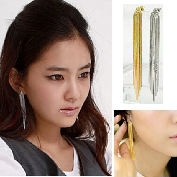 訳アリ【メール便送料無料】 ロングピアス 金 銀 (ゴールド ライン ロング ストーン シルバー フリンジ イヤーフック )