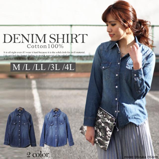 冬新作 大きいサイズ レディース ウエスタンデニムシャツ ライトデニム レディーストップス レディース おしゃれ デニムシャツ 春 夏 秋 冬こなれ感 M L LL 3L 4L カジュアル