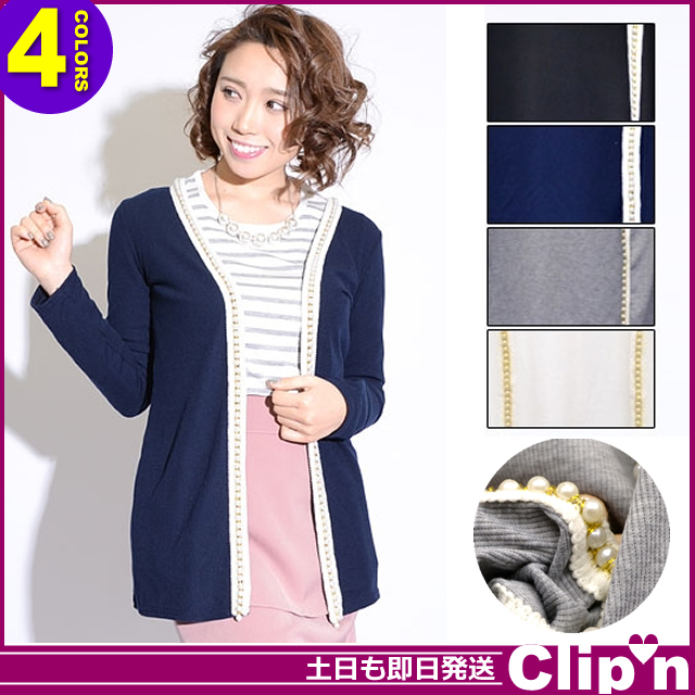 【メール便/送料無料】パール 縁取り ロング トッパー カーディガン *トップス[即納即日発送あす着]