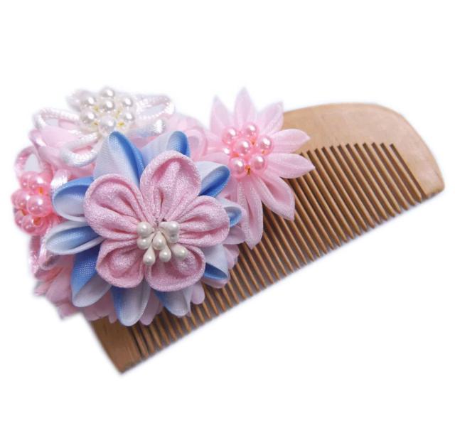 髪飾り 髪かざり 桃の木櫛 くし 花飾り付 薄ピンク花パールビーズ 日本製 振袖 成人式 卒業式 袴 着物 浴衣 女性用 レディース はかま きもの ゆかた