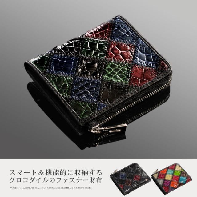 クロコダイル財布L字ファスナーシャイニングカットワーク/メンズギフト(No.06000571-mens-1)ヘンローン社製原皮使用