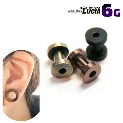 6ゲージ ピアス 金属アレルギー対応 つけっぱなし カラー 黒 ブラック 金 ゴールド プラグ拡張 穴 メンズ レディース