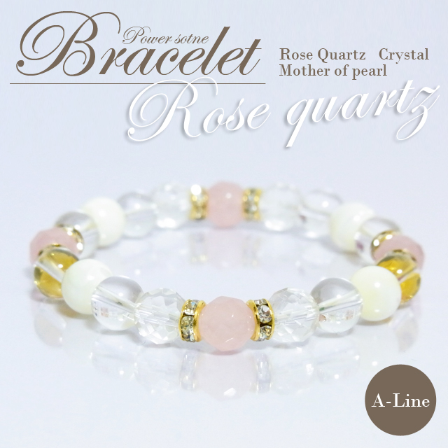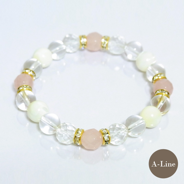 パワーストーン ブレスレット 64面カットローズクォーツ&水晶・マザーオブパール8mm PW-2939