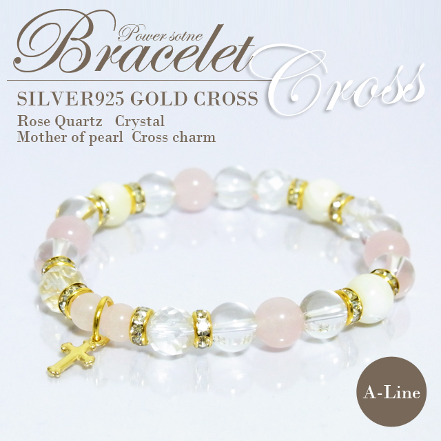 パワーストーン ブレスレット ブレストップシリーズ SILVER925ゴールドクロスチャーム使用8mm PW-2940