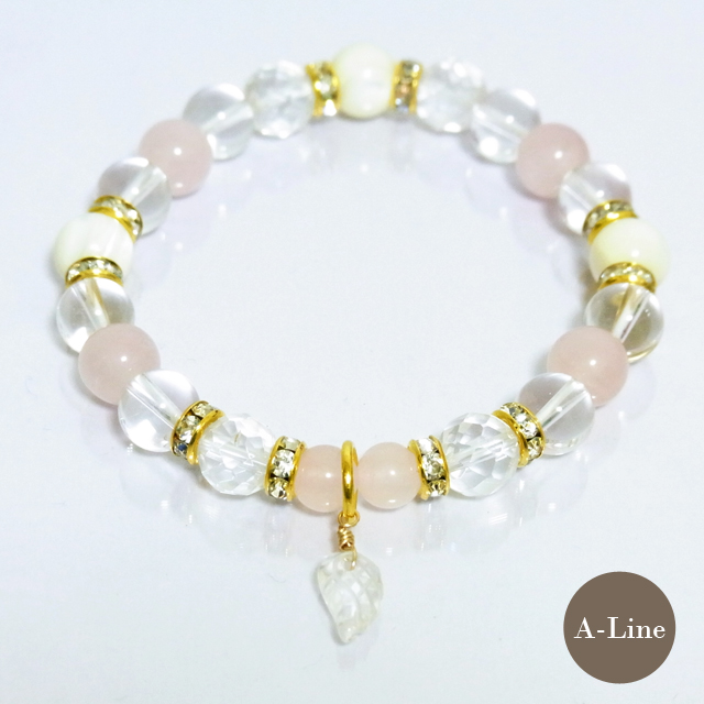 天使の羽水晶・64面カット水晶・ローズクォーツ&マザーオブパール・水晶8mm・ローズクォーツ6mm・国産高級オペロンゴム