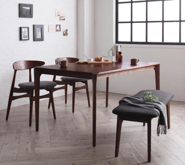 北欧デザイナーズダイニングシリーズ〔Spremate〕シュプリメイト 4点Bセット(テーブル+チェアB×2+ベンチ) 〔B〕チャコールグレー〔ベンチ〕ダークグレー ダイニングセット テーブル・イスセット 【北海道・沖縄・離島配送不可】