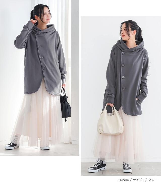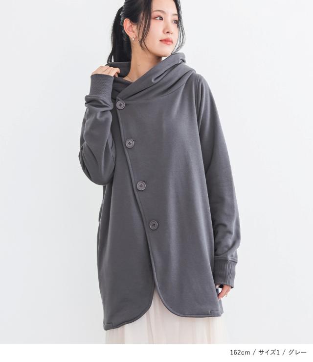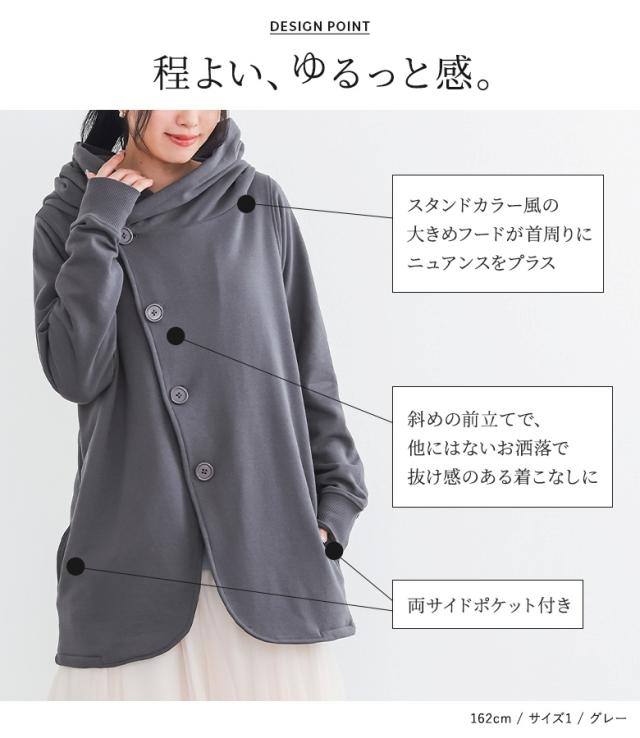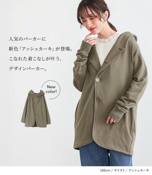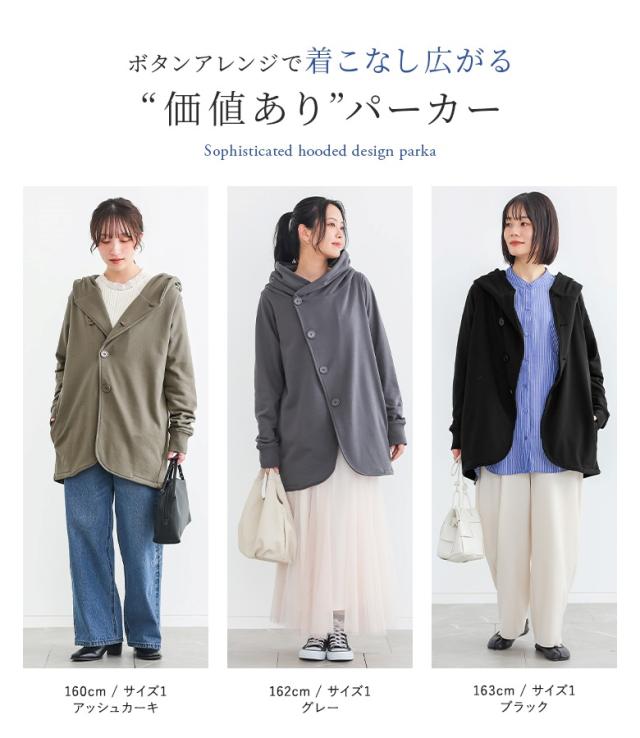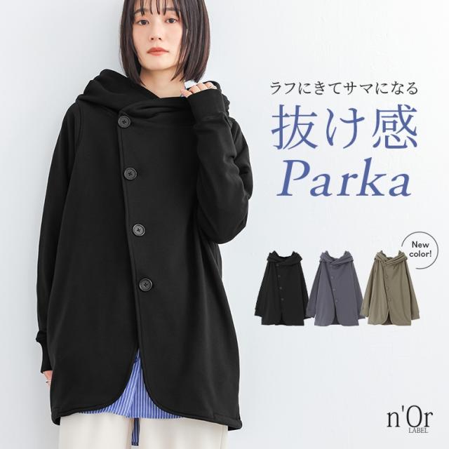 【TP】 カジュアル シンプル ナチュラル キレカジ フェミニン レディース トレーナー スウェット スエット トップス 羽織り ライトアウター パーカー フード付き ボタンパーカー n'OrLABEL ノアールレーベル 大人女子 大人可愛い お洒落可愛い 大人カジュアル ベーシック ニュアンス ラフ エフォートレス オフィスカジュアル 上品 きれいめ 長袖 ミディ丈 ミドル丈 アシンメトリー アシメ 無地 裏毛 レイヤード 重ね着 ポケット おうちで洗える 春 秋 冬 ロングシーズン モード マニッシュ 可愛い系 ゆったり ゆる 楽ちん お尻が隠れる 二の腕カバー Sサイズ Mサイズ Lサイズ LLサイズ 3Lサイズ XLサイズ ぽっちゃり 体型カバー 大きいサイズ プラスサイズ 10代 20代 30代 40代 50代 60代 女子会 お買い物 お出掛け 旅行 おしゃれ お洒落 トレンド 流行 ママ 母 母親 osharewalker オシャレウォーカー おしゃれうぉーかー グリーン 緑 カーキ グレー 灰色 ブラック 黒[ID]nz-8[n'OrLABEL洗練フード付きデザインジャケット]