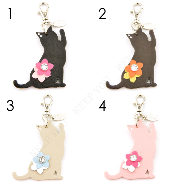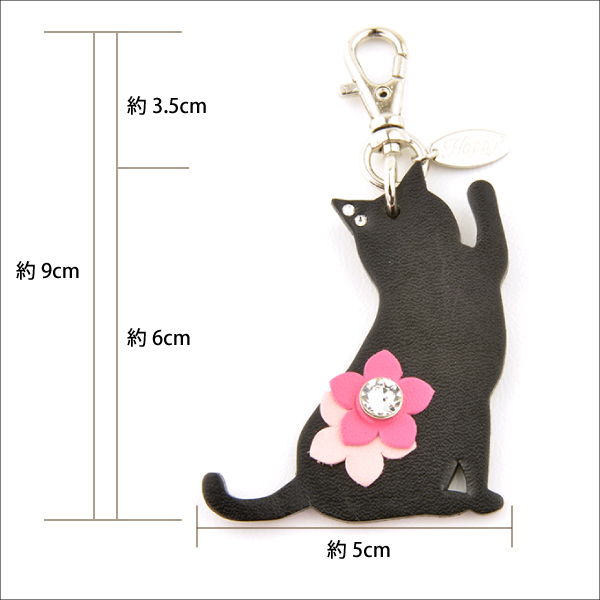 【メール便対応】ねこパンチチャーム 牛本革 スワロフスキー付き Happy 全5色【キーホルダー チャーム リード 首輪チャーム キーリング 猫 日本製 ハッピー】hc-21 ┃