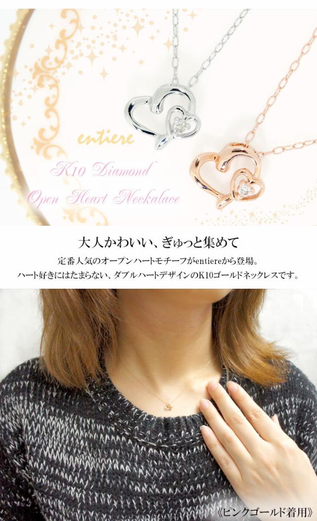 【送料無料】【entiere】 くまのぬいぐるみ付き K10ゴールド 選べる2色 オープンハート ダイヤモンド WG PG ネックレス
