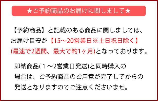 ■商品入荷後、注文の早いお客様から順次発送させて頂きます。配送日の指定はお受けできませんので、ご了承ください。