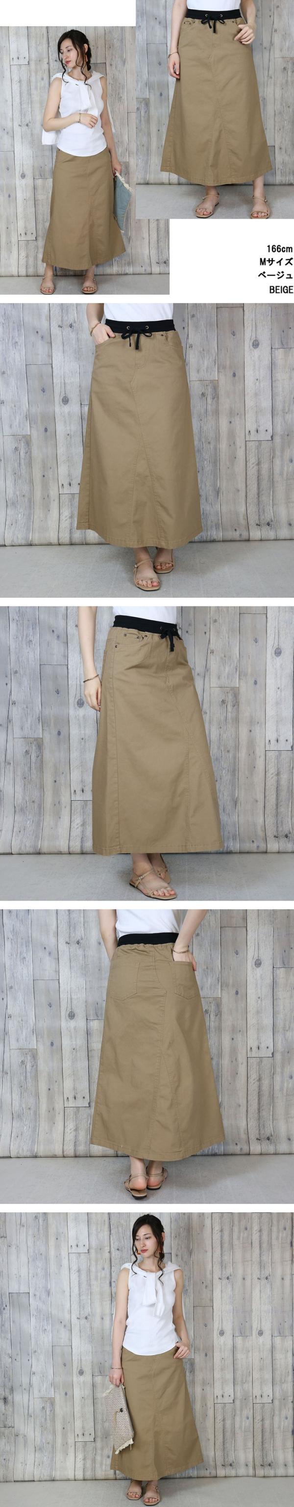 おかげ様でロングセラー!どんなコーデにもすんなり取り入れられるオールシーズン大活躍の定番ツイルスカートが入荷しました!!ロング丈で使いやすい♪広がり過ぎないフレアAラインが綺麗なシルエットをメイクして女性らしさを引き立ててくれます☆ストレッチ素材に、ウエストはリブゴム+調節紐入りで安心感ある履き心地に大満足♪ベーシックな無地デザインに選べる3色展開。