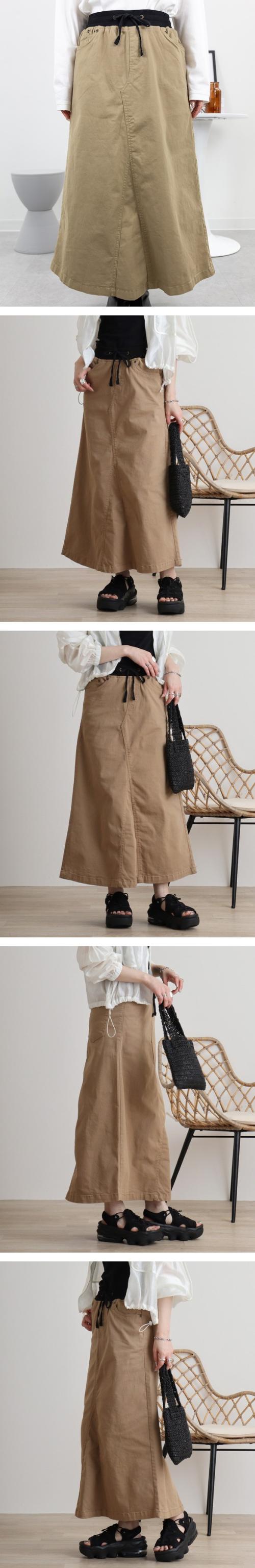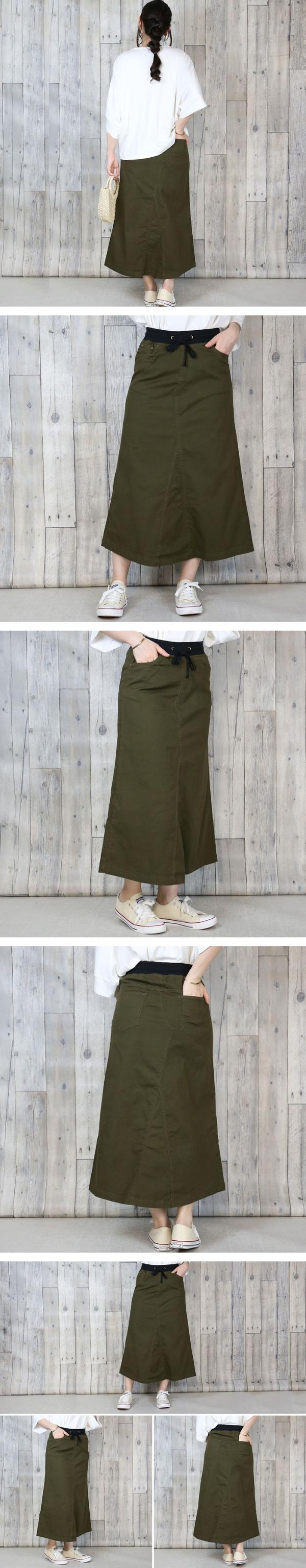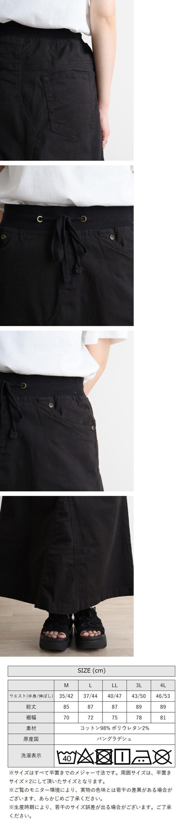 | しっかりとしたツイル生地ながら、ポリウレタン混で適度なストレッチ性があり、着心地のよさが魅力です。 「マキシ丈だけど重すぎない」、そんな理想の一枚に仕上げました。 ウエスト部分はフラットな仕上げで、トップスをインしてもキレイにまとまる♪ 体型を拾いすぎないシルエットで、ヒップやお腹まわりもすっきりカバー◎ ツイル生地だから、春秋はもちろん、冬もレギンスやタイツと合わせて活躍。 スニーカーやサンダルと合わせてカジュアルに、パンプスと合わせればきれいめコーデにも◎ ラクに穿けて、体にフィット♪ サイズ選びに悩みがちな方にも嬉しいデザインです。 ウエスト部分は総ゴム&ドローストリング仕様で、着脱しやすく体にフィット♪ |
