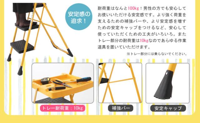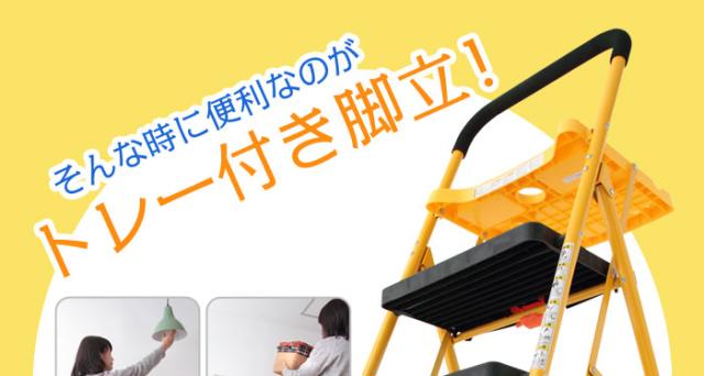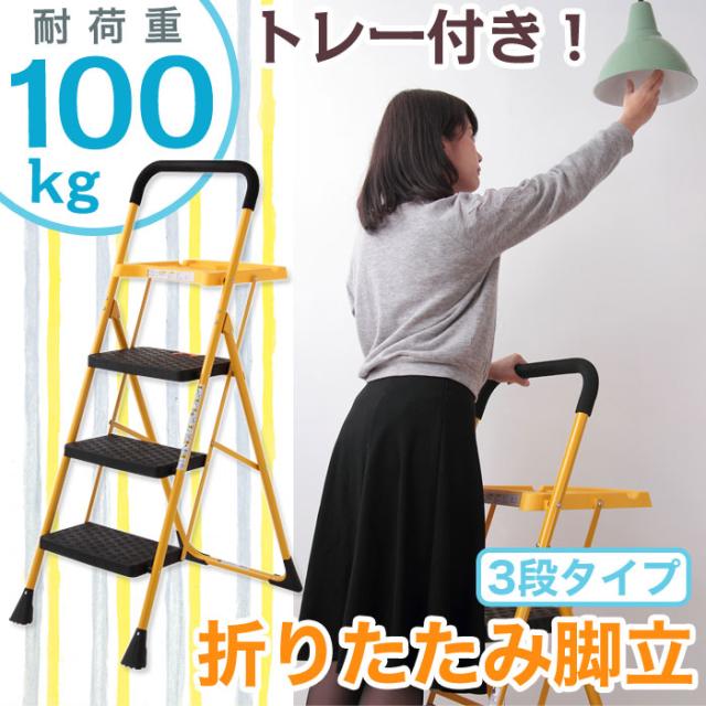 脚立 はしご 梯子 踏み台 ステップ 折りたたみ 折り畳み トレー付き 折りたたみ脚立 3段 コンパクト 収納 洗車 大掃除 DIY(代引不可)【送料無料】