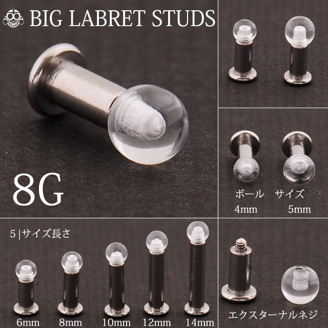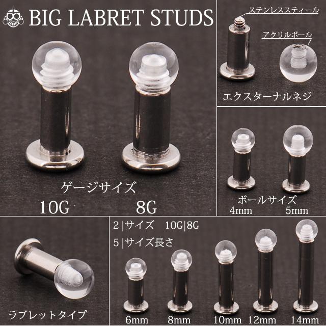 ボディピアス 10G 8G シークレット 隠せるピアス クリアボール ステンレスシャフト ラブレットスタッズ ロブ 拡張ピアス