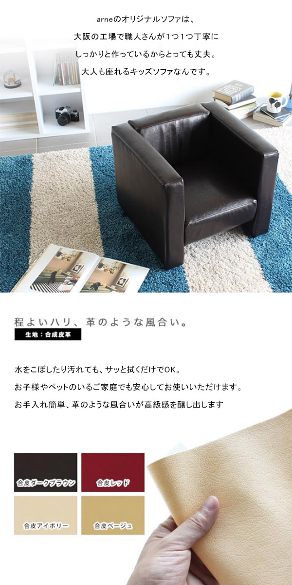 ソファ レザー 1人用 キッズソファー 合皮 北欧風 子供用ソファー 一人掛け おしゃれ mini プチコン 1P 合成皮革 □