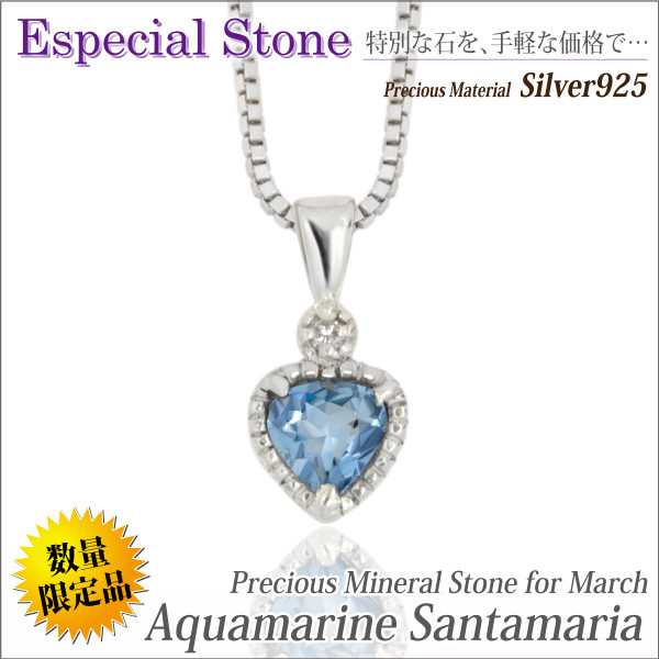 アクアマリン サンタマリア 送料無料 シルバー925 4mm ハートシェイプ ミル打ち風 ペンダント ネックレス チェーン 付
