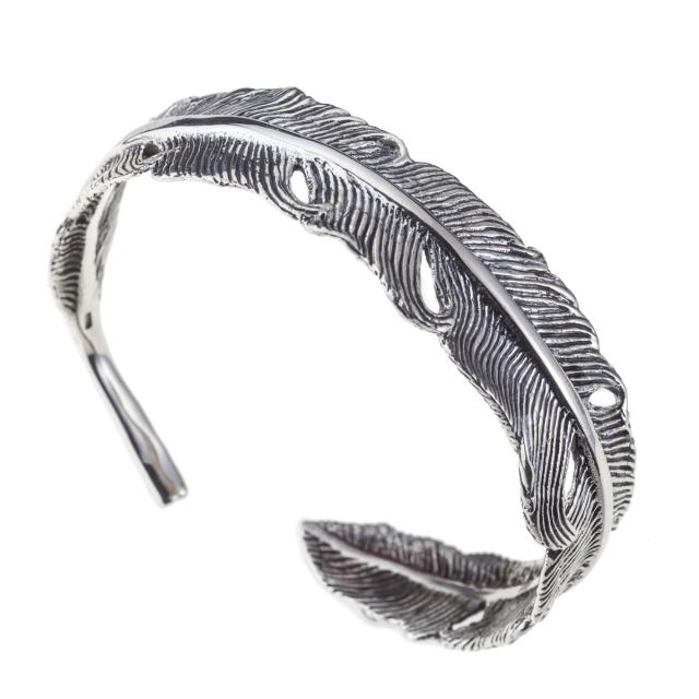 上昇・飛躍のシンボルとされているフェザーのクールなバングルです。