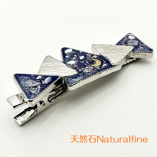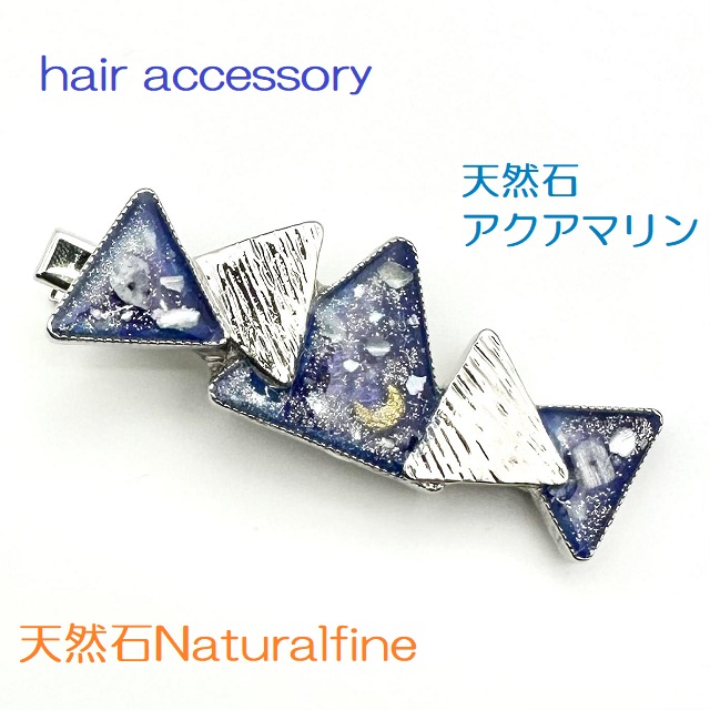 こちらは、天然石アクアマリンとシェルをレジンで封入したヘアーアクセサリーです。
