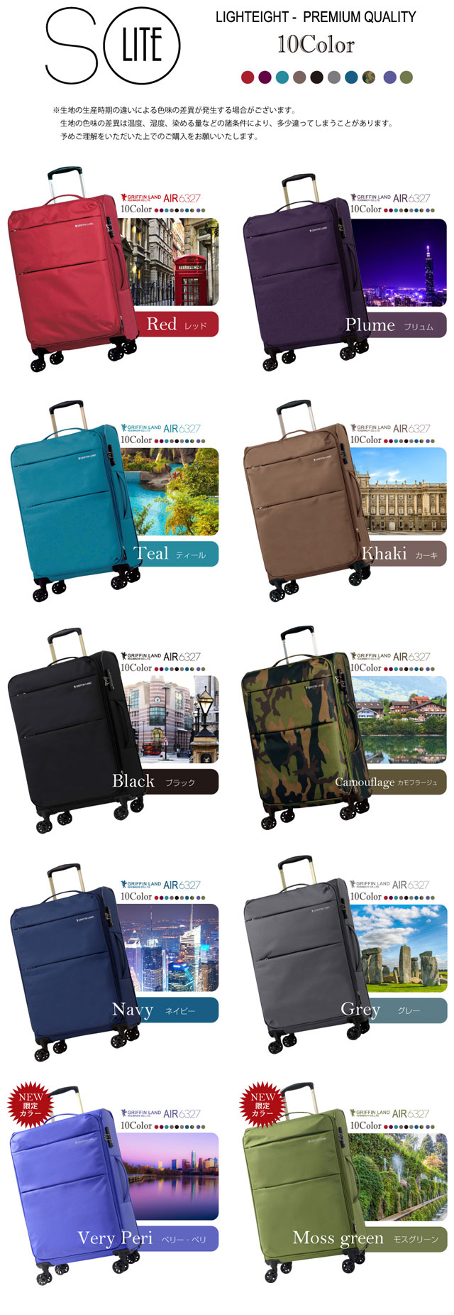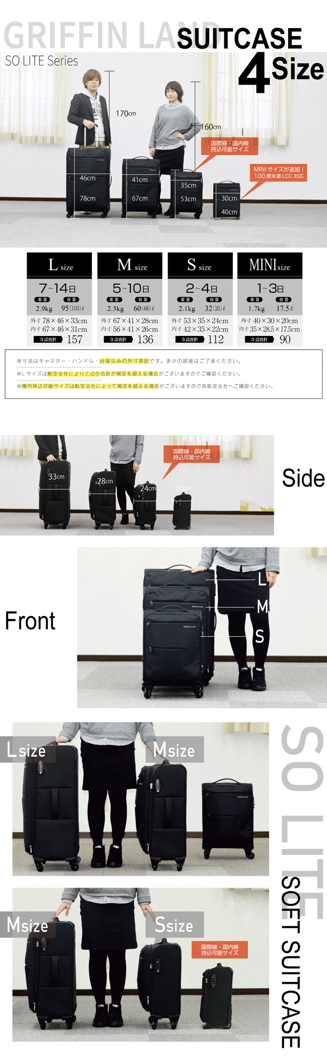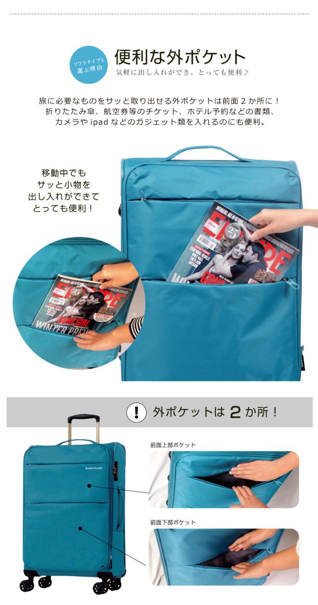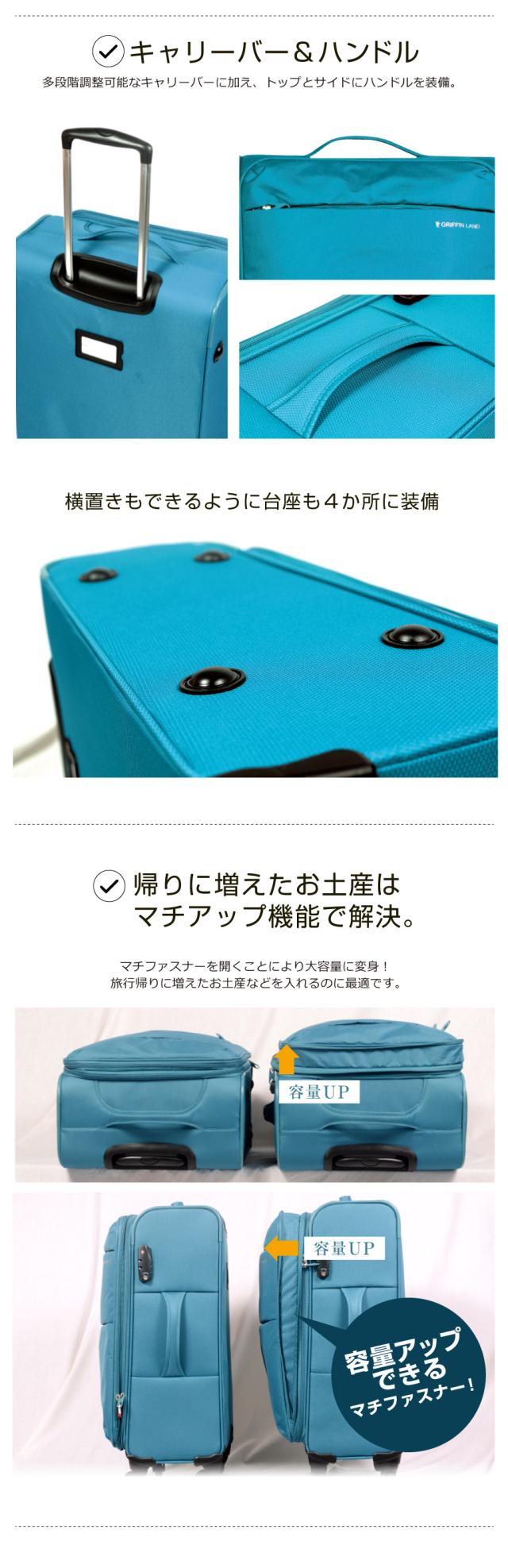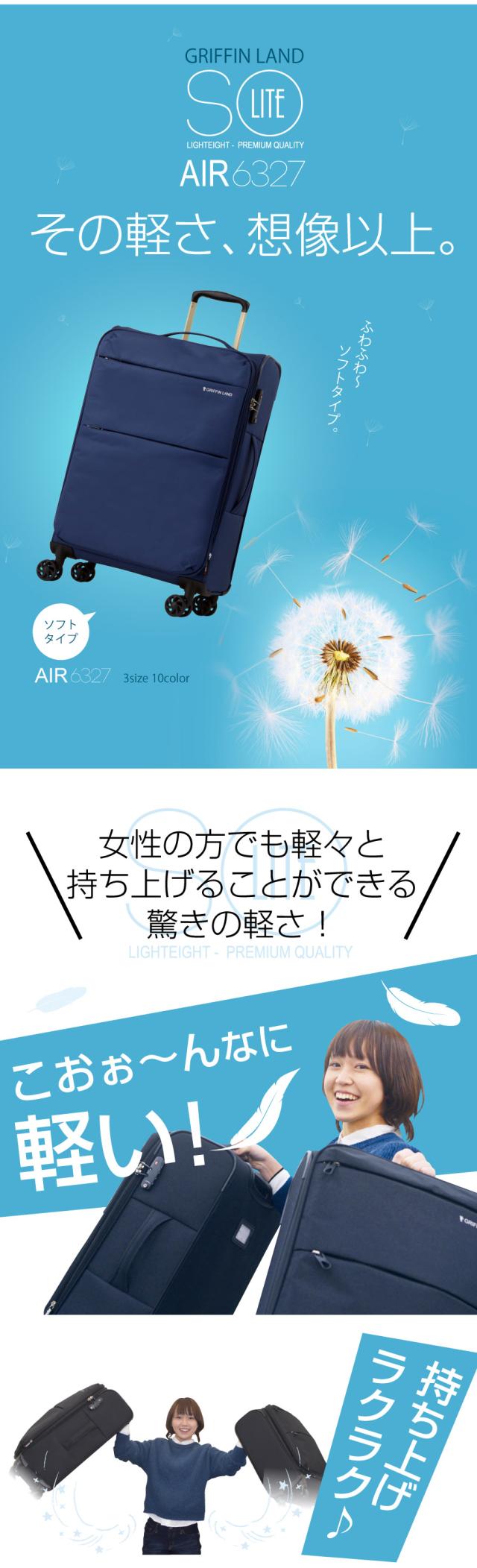 キャリーケース キャリーバッグ スーツケース AIR6327 SOLITE Mサイズ 中型 グリフィンランド griffin land 送料無料 超軽量 軽い 快適 マチアップ バッグ ソフト ファスナータイプ メンズ レディース 男女兼用 ダイヤル TSA 4輪