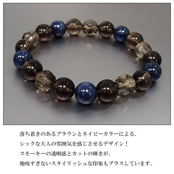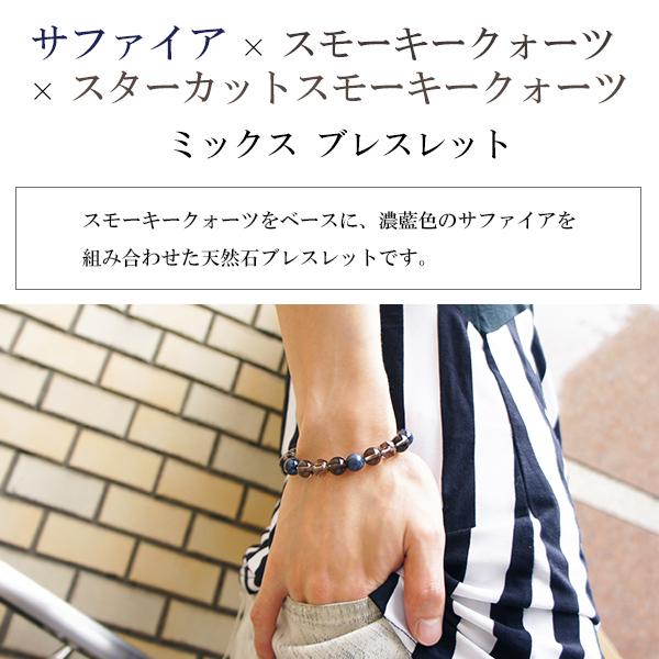 スモーキークォーツをベースに、濃藍色のサファイアを組み合わせた天然石ブレスレットです。