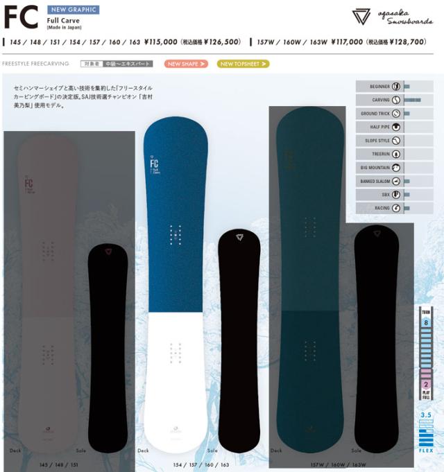 25-26 OGASAKA スノーボード オガサカ FC エフシー Full Carve メンズ 154cm 157cm 160cm 163cm フリースタイル カービング スノボ 板 2025 2026 日本正規品