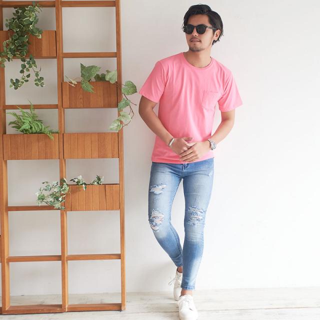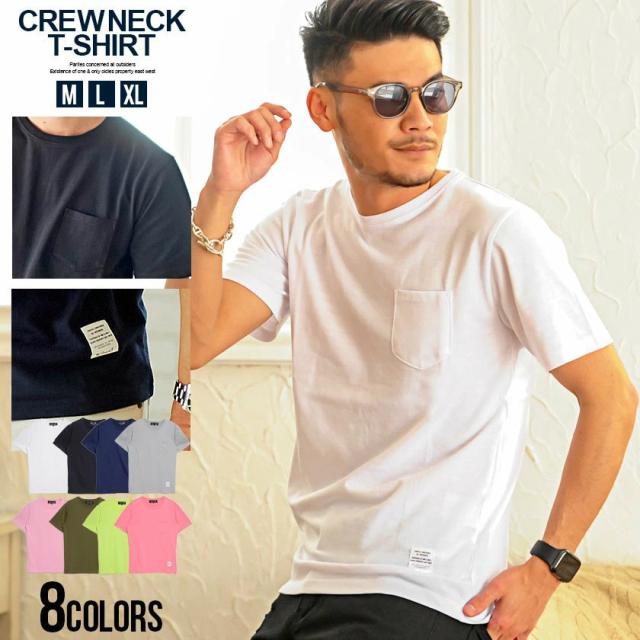 【送料無料】Tシャツ メンズ 半袖 CavariA キャバリア ポケット付きクルーネックTシャツ ゆうパケット1 即日発送 トップス カットソー 無地 ホワイト ブラック ブルー ネイビー グレー カーキ ピンク イエロー 白 黒 M L XL [CARYU16-01]