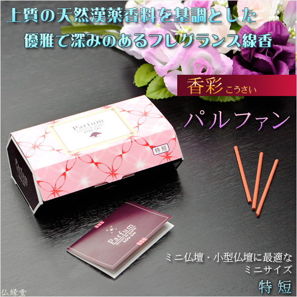 フレグランス線香【香彩パルファン:特短(ミニサイズ)】仏壇・仏具 お線香 小型仏壇 ミニ仏壇 手元供養