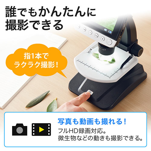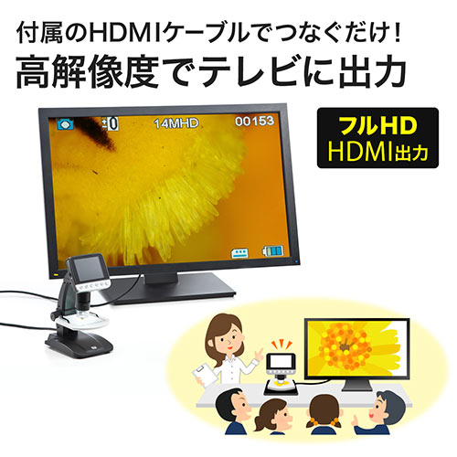 ⇒ご購入の前にご確認下さいHDMIの高画質出力が可能なデジタル顕微鏡。最大500倍の光学ズームに対応し、フルHDでの動画撮影も可能。3.5インチのLCDモニタと8つのLEDを搭載した、見やすく観察できるマイクロスコープ。【WEB限定商品】
