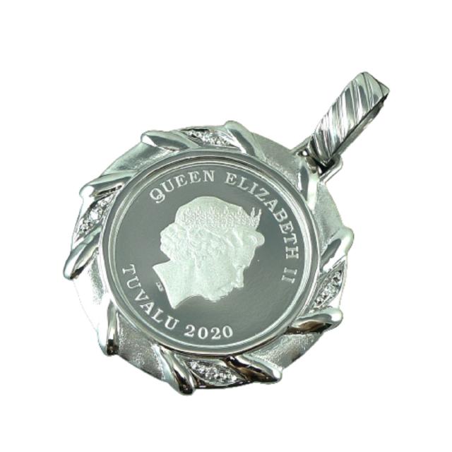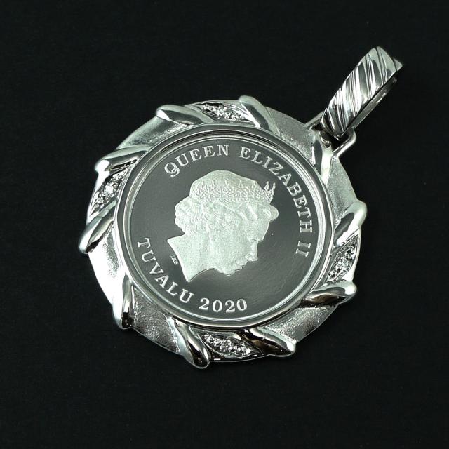 南太平洋の英連邦独立国・ツバル発行の1/5オンス純プラチナコインに、Pt900製天然ダイヤモンド付の枠が付いたペンダントトップで