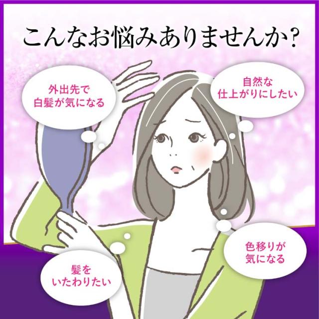 ・白髪の気になる部分に塗布し、毛先までのばさないようにしてください。衣服などへの色移りの原因となります。