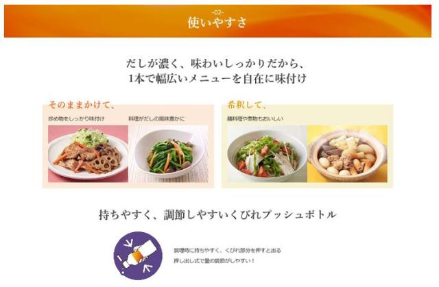 | しょうゆ(大豆・小麦を含む)(国内製造)、ぶどう糖果糖液糖、砂糖、食塩、節(かつお、まぐろ、いわし、そうだかつお)、かつお節エキス、小麦発酵調味液、魚介エキス、みりん、昆布/調味料(アミノ酸等)、アルコール、酸味料 |