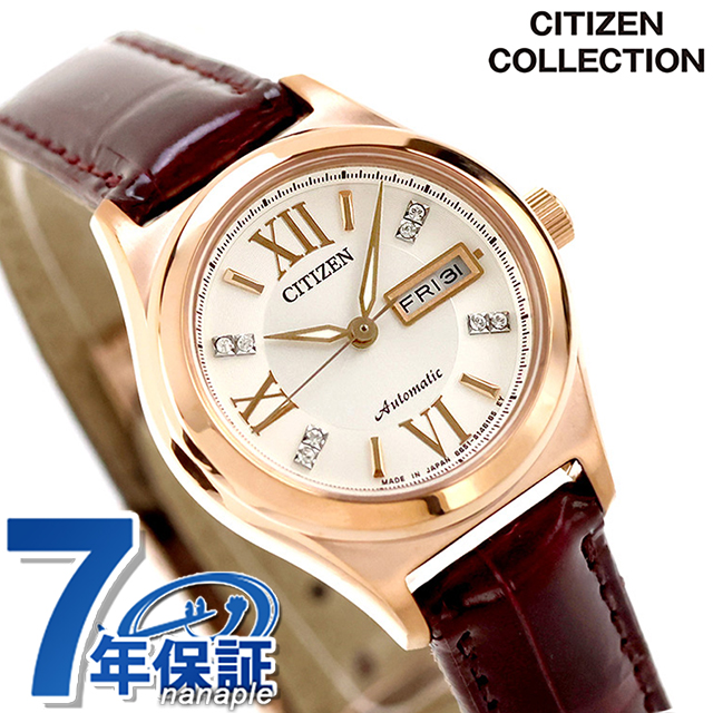 シチズン コレクション メカニカルウォッチ 自動巻き レディース PD7162-04A CITIZEN 腕時計 シルバー ワインレッド 時計 ブランド おしゃれ 防水 プレゼント 女性 実用的