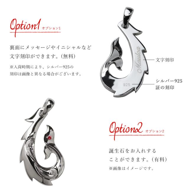 ハワイアンジュエリー ネックレス フィッシュフック モアナ ネックレス 刻印 無料 誕生石入れ可 Mサイズ ロジウムコーティング シルバー925 ギフトラッピング可能 チェーン 長さ選べる プレゼント 入学式 就職 お祝い 新生活 【品番:CG-SP3401】