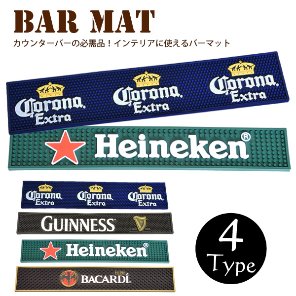 マット グラスマット ロングサイズ 4種類【コロナ ギネス ハイネケン バカルディ バーグッズ アメリカ雑貨 インテリア雑貨 ガレージ雑貨 カフェディスプレイ用品 BARディスプレイ用品】 ┃
