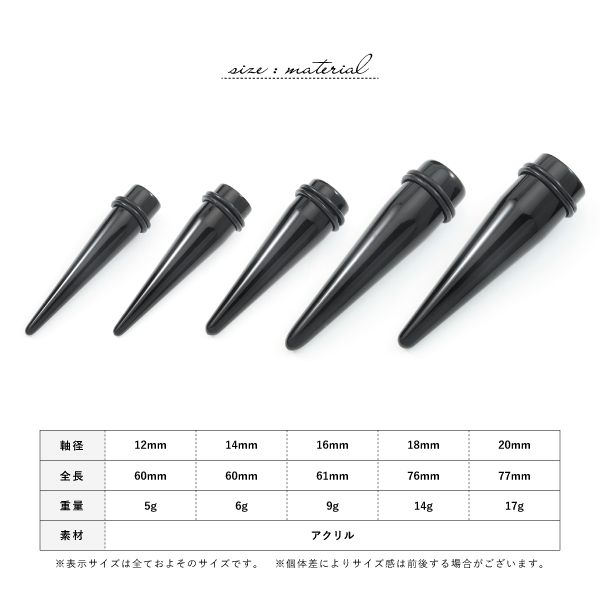 拡張器 アクリル ブラック エキスパンダー 12mm 14mm 16mm 18mm 20mm ボディピアス 拡張 ホールトゥ 軽い