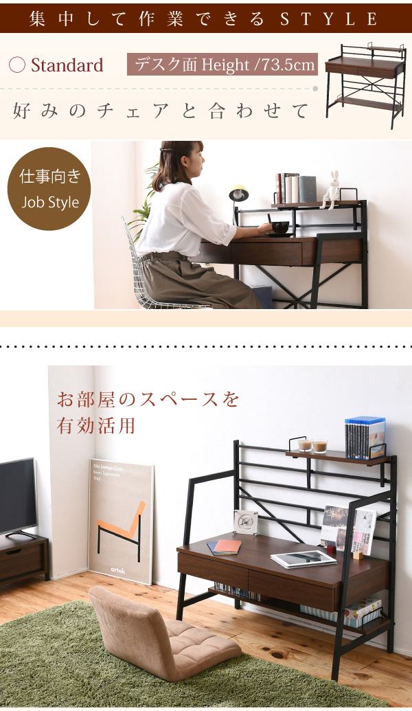 2WAY パソコンデスク 90 幅 高さ調整 書斎机 ワークデスク 棚付き 組み換えデスク 薄型デスク ローデスク