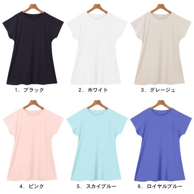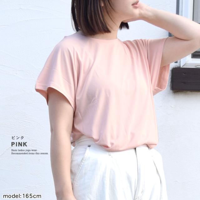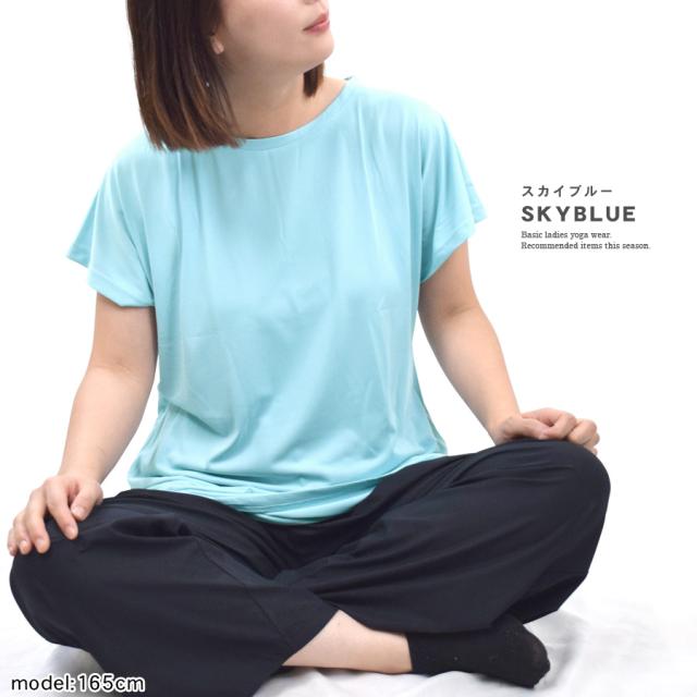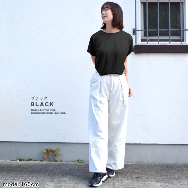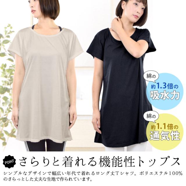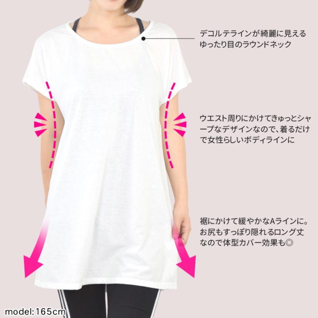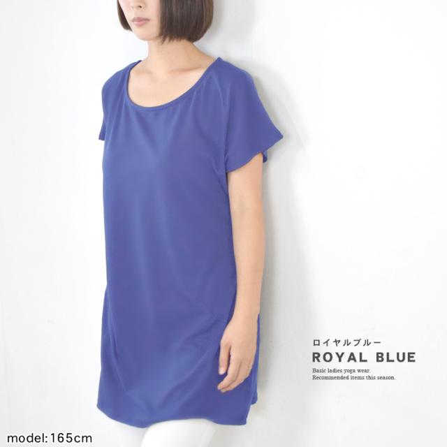 Tシャツ レディース 半袖 ロング丈 ヨガ ヨガウェア トップス カットソー シンプル 無地 薄手 ピラティス フィットネス 吸水速乾 伸縮性 伸びる きれいめ さらさら 快適 フレア チュニック ラッシュガード スポーツ 送料無料 (han1141)