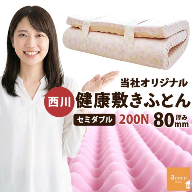 敷き布団 西川 セミダブル 極厚 厚み8cm 健康敷きふとん 80mm 200ニュートン マットレス 布団 凸凹 体圧分散 大型便