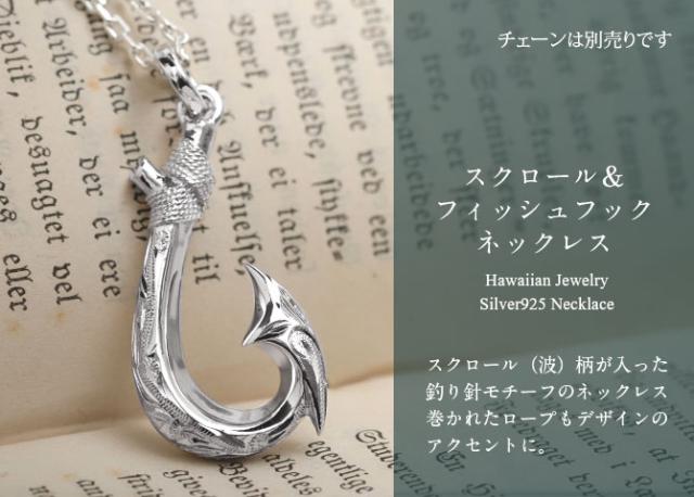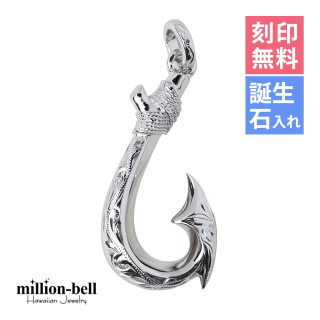 ハワイアンジュエリー フィッシュフック モアナ 刻印 無料 誕生石入れ可 ペンダントトップ スクロール シンプル ロジウムコーティング シルバー925 ネックレス チェーン別売 ペンダントヘッド メンズ レディース 誕生日 プレゼント 母の日 【品番:SP3403】