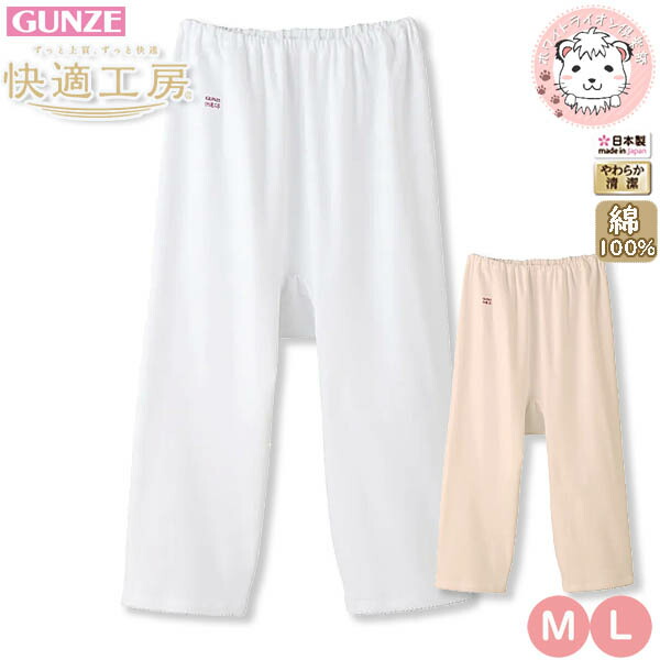 グンゼ 快適工房 七分パンティ 綿100% 抗菌防臭 M/L | 腰ゴム取替可 ひざ下丈 無地 レディース 綿 ズボン下 ペチパンツ スラックス下 肌着 インナー KQ3064 GUNZE