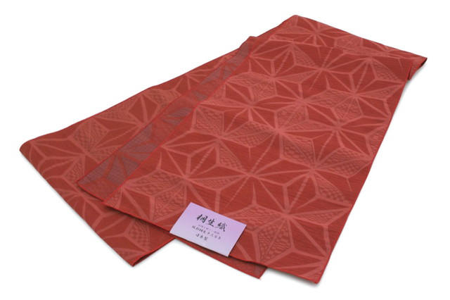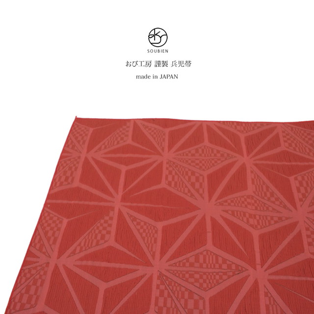 兵児帯 赤 レッド 紅海老茶 しじら織り 麻の葉文 浴衣帯 浴衣用 小紋用 夏着物用